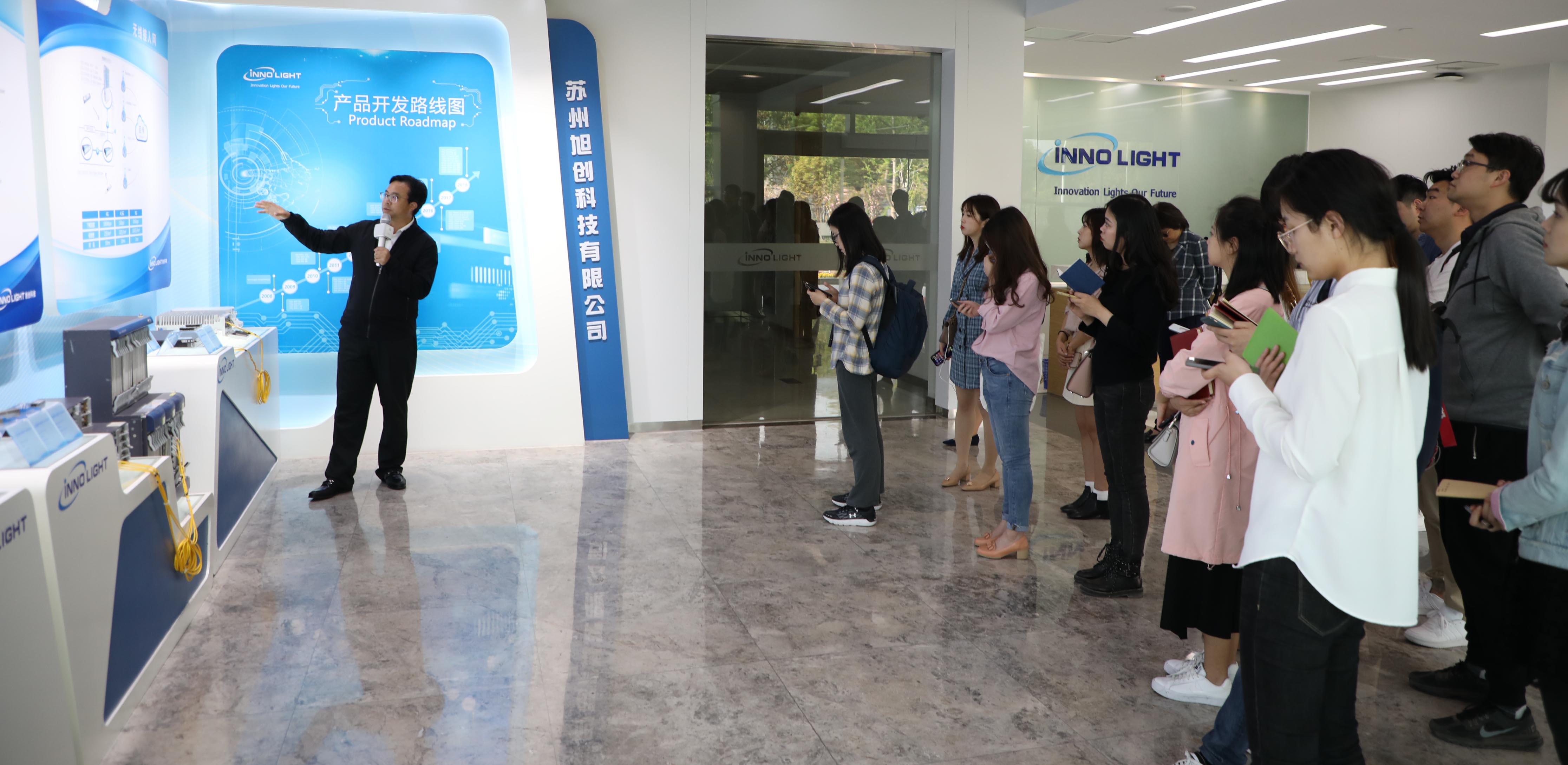 在旭創(chuàng)科技展廳,總經(jīng)理劉圣向記者朋友深入淺出地講解了光模塊的主要功能、應(yīng)用領(lǐng)域以及未來的發(fā)展方向,同時,他結(jié)合公司的發(fā)展歷程講述了旭創(chuàng)與園區(qū)的淵源。劉圣表示,旭創(chuàng)從一個海歸創(chuàng)業(yè)的小公司發(fā)展為今天年產(chǎn)值幾十億元的光模塊行業(yè)佼佼者,與園區(qū)的支持與幫助分不開——公司創(chuàng)立之初,憑著一紙商業(yè)計劃書,就拿到了蘇州園區(qū)給予的第一筆天使投資基金,是園區(qū)寬松的政商環(huán)境和充分的信任給了旭創(chuàng)沖鋒的勇氣。