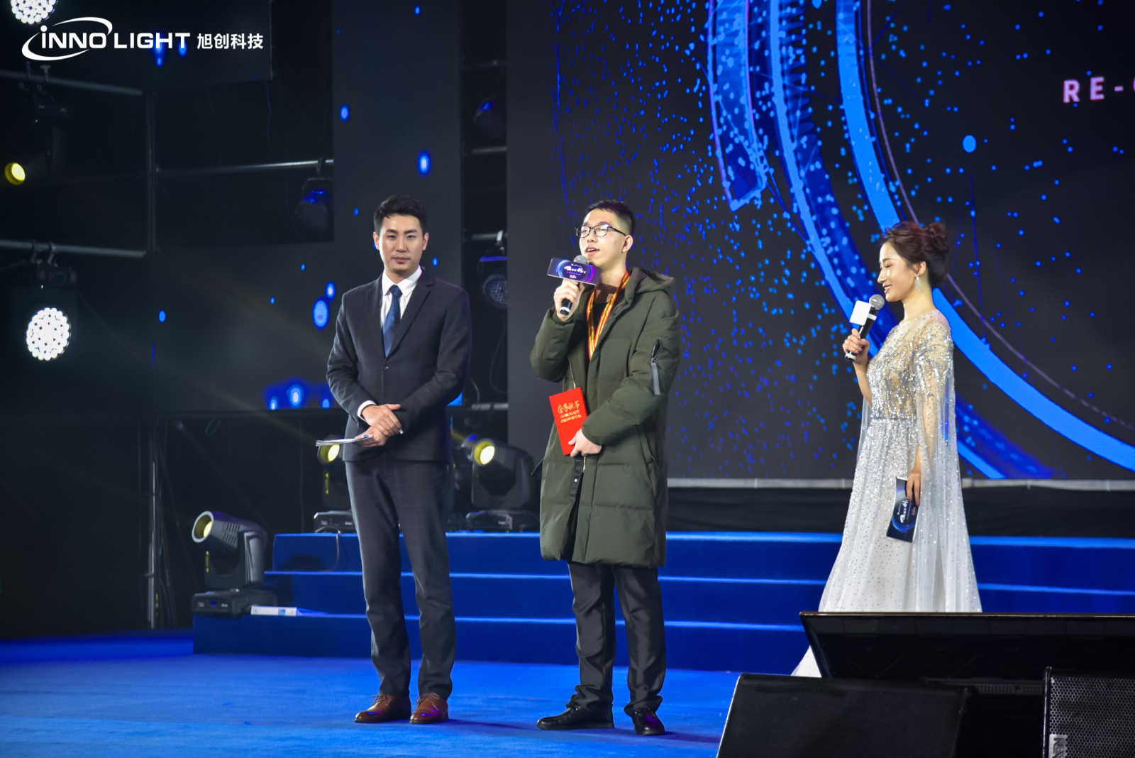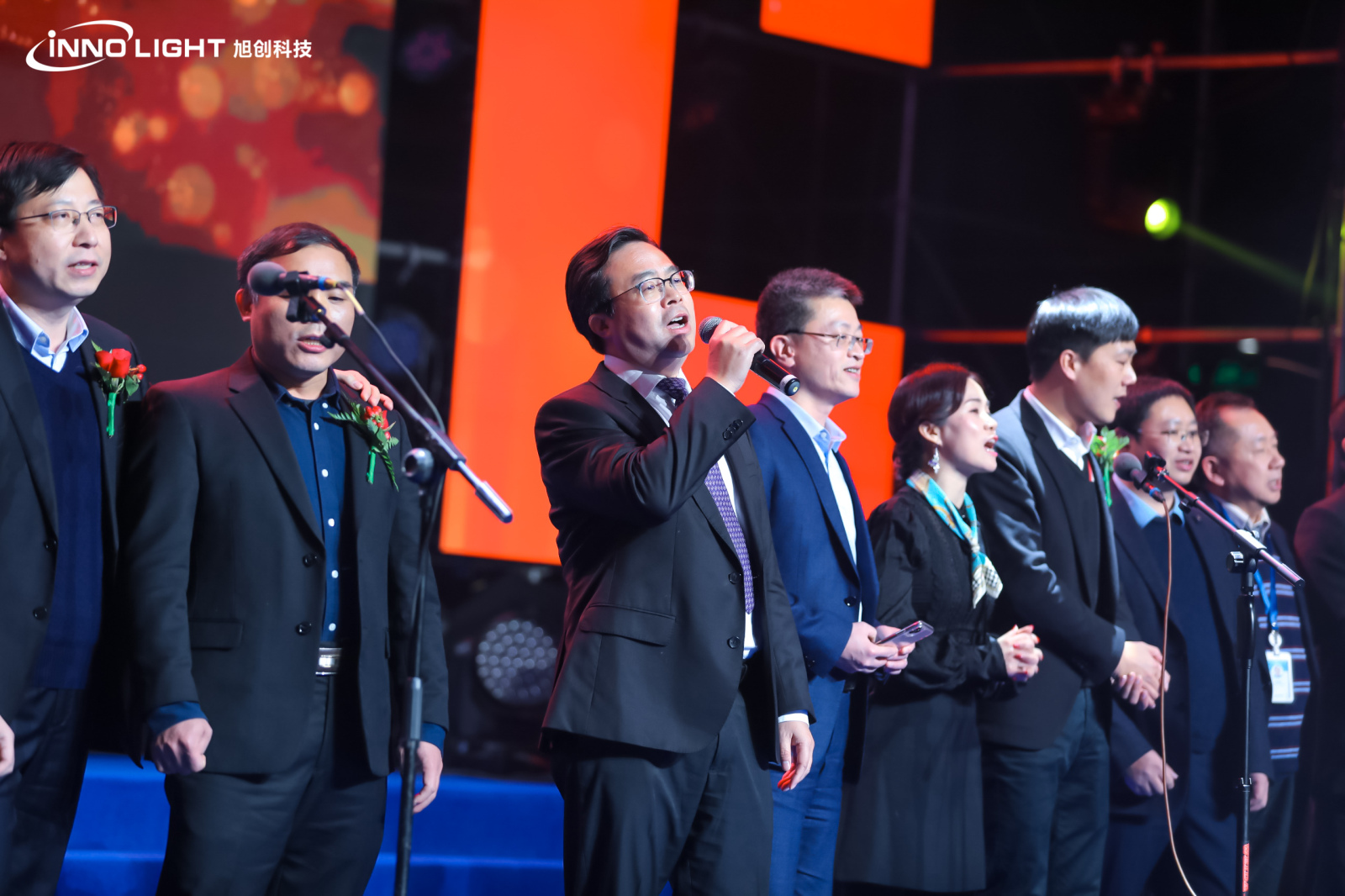 在這場年末歡聚中,旭創(chuàng)科技為默默付出的員工們頒發(fā)嘉獎、獻上祝福。創(chuàng)新獎、園丁獎、優(yōu)秀員工獎等等獎項,成為最閃亮的勛章。旭創(chuàng)高管更是以一首《追夢赤子心》感謝大家的協(xié)力奔跑,愿赤子之心不變,生命因旭創(chuàng)閃耀!