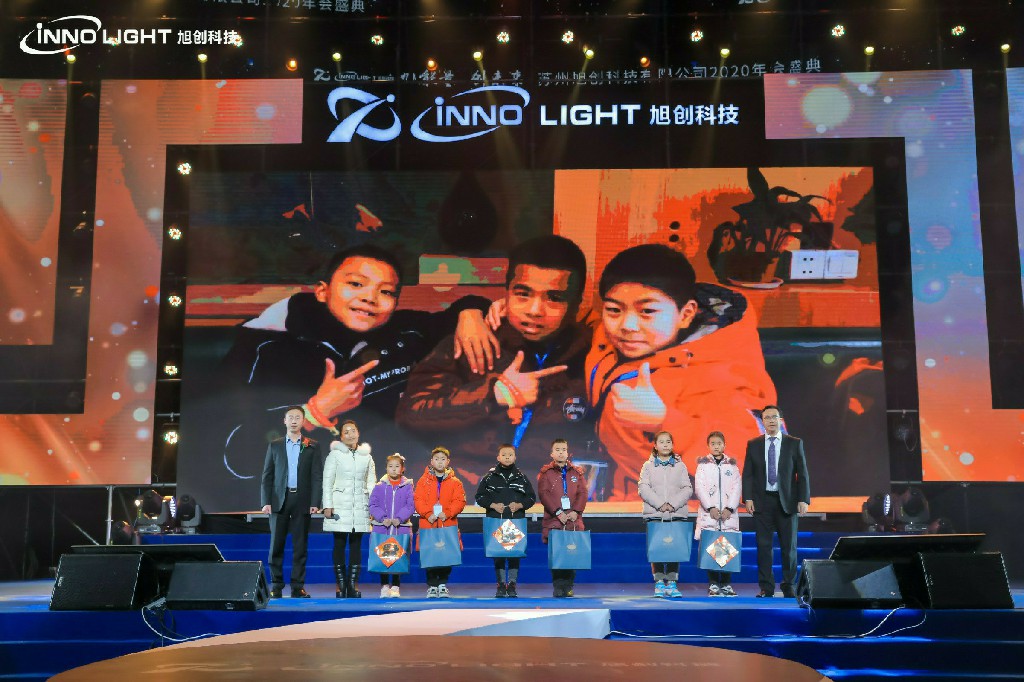 除此之外,年會現(xiàn)場還來了幾位特殊的客人。他們唱著湘西的民歌,講述著學校的變化,感恩可以來到蘇州看看外面的世界,他們是旭創(chuàng)科技通過向榮基金長年資助的湘西學校師生代表。孩子們用稚嫩的語言表達最真的謝意,旭創(chuàng)也為孩子們準備了禮物,希望通過書籍給予他們生活的光芒。